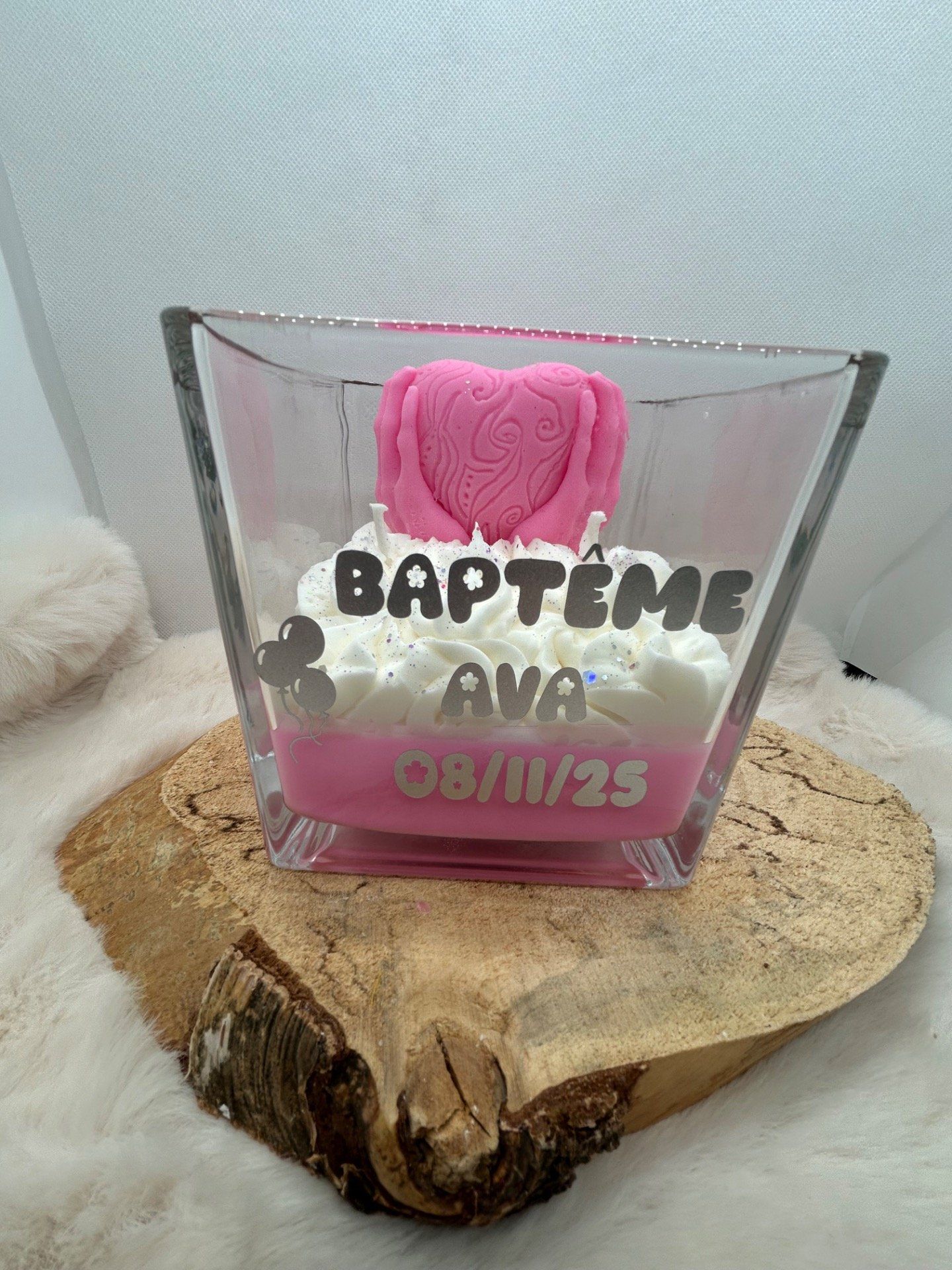Fabriquée avec soin, elle peut être personnalisée avec un prénom, une date ou un message spécial, faisant de chaque bougie un souvenir unique.