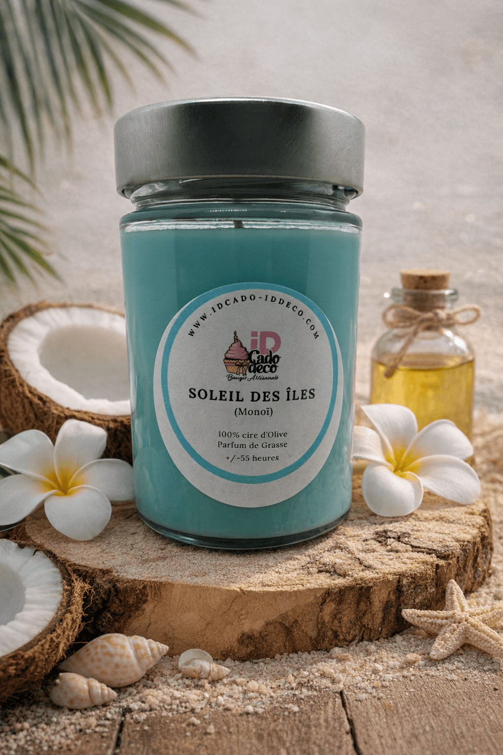 Bougie Monoï, une senteur exotique et ensoleillée qui crée une ambiance tropicale et relaxante. Parfaite pour apporter une touche de chaleur et de sérénité à votre intérieur.