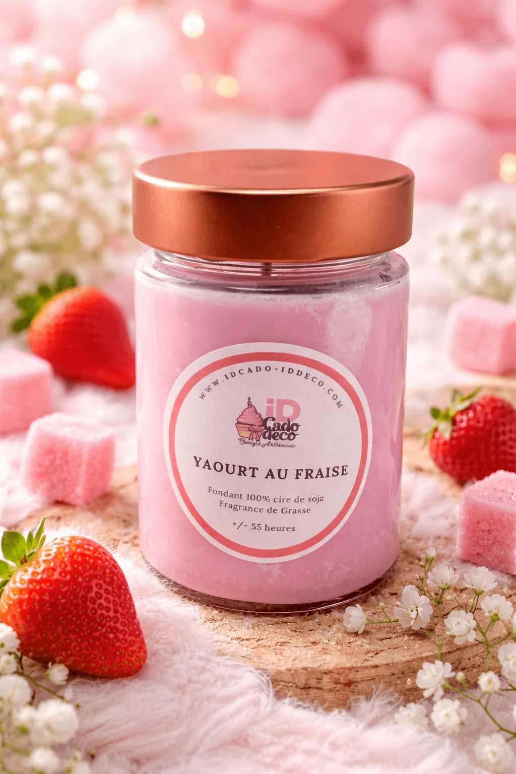 Bougie Parfumée Yaourt Fraise – Douceur Fruitée