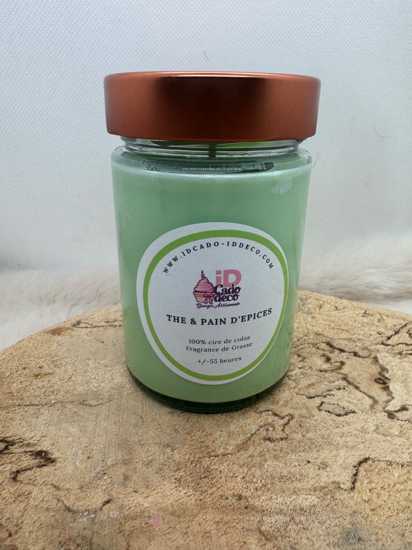bougie thé et pain d'épices, bougie parfumée épicée, bougie gourmande, bougie artisanale, bougie cire végétale, bougie mèche coton, bougie contenant en verre, bougie ambiance cosy, bougie idée cadeau, bougie hiver, bougie parfum maison.